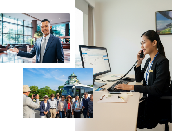 団体旅行や企業研修、訪日客向けツアーなど、目的に合わせた手配を行い、安心・快適な移動と滞在を実現。煩雑になりがちな調整作業を一括でサポートし、企業様の業務負担を軽減します。